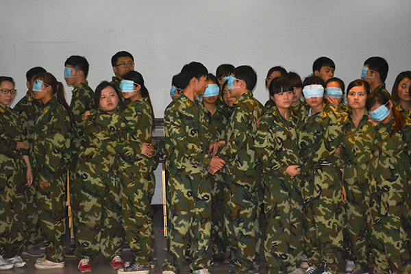 懷著緊張,激動地心情來到了張家灣拓展訓練基地,還以為到達之后會吃飯,想象很美好,現(xiàn)實很殘酷,直接集合隊伍發(fā)衣服,站隊進行…