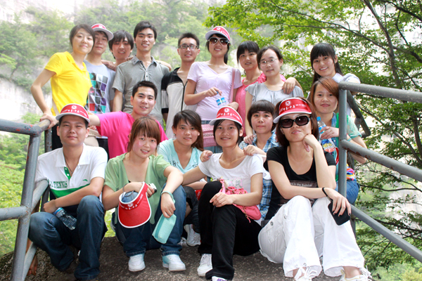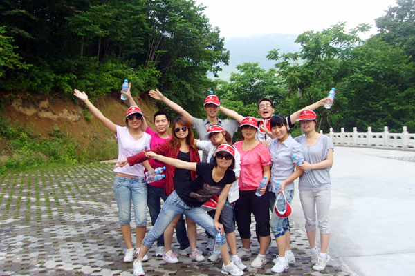 火爆網絡全體員工在白云山山腳下合影留念