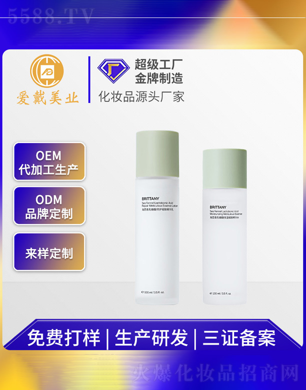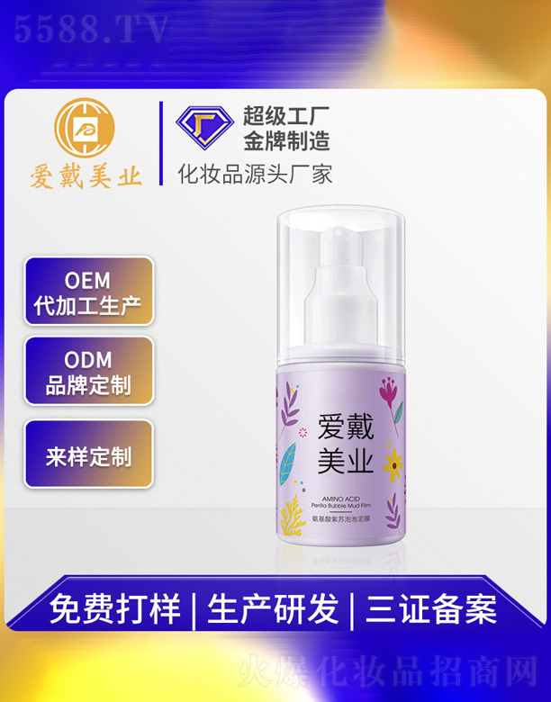 廣州愛戴化妝品有限公司成立于1994年,配備日本VQ—1—1300M型真空乳化機(jī)、350M乳化罐、去離子水設(shè)備以及配套的膏體罐裝生產(chǎn)線、液體罐裝生產(chǎn)線、鋁箔袋罐裝生產(chǎn)線等現(xiàn)代化設(shè)備,達(dá)到年產(chǎn)洗滌類5000噸、膏霜類2000噸,可以同時(shí)生產(chǎn)灌裝40個(gè)以上品種的強(qiáng)大生產(chǎn)能力,使公司成為國內(nèi)大型的現(xiàn)代化生產(chǎn)企業(yè),雄視產(chǎn)業(yè)風(fēng)云市場。